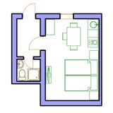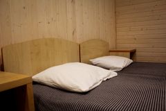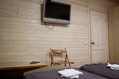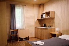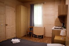 В номере, в кухне-гостиной, две односпальные кровати (можно объединить в одну двухспальную кровать). Кухня полностью оборудована (обеденная зона, варочная панель, электрочайник, холодильник, микроволновая печь,набор необходимой посуды, столовые приборы) Есть шкаф для одежды, санузел с душем и феном, а также спутниковое телевидение и Wi-Fi.