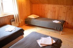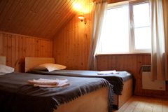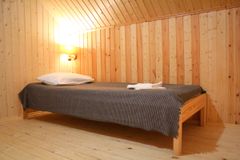 В данной секции 4 основных спальных места и 6 дополнительных: на втором этаже, в отдельной спальне, можно разместиться 3 гостям на 3 односпальных кроватях. Перед спальней, также на втором этаже, есть раздвижной диван на 1 человека и односпальная кровать. А на первом этаже можно уютно расположиться от 1 до 4 человек на двух раздвижных двухспальных диванах.