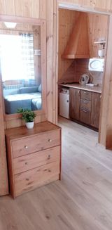 В коттедже есть полностью оборудованная кухня(обеденная зона,встроенная электроплита, холодильник, микроволновка, электрочайник и набор неоходимой посуды, столовые приборы), санузел с душем и феном. Есть спутниковое телевидение и Wi-Fi.